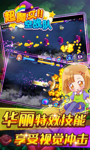 超魔女空战队是一款横版飞行射击类手机游戏,萌萌的小魔女们骑上扫帚,使用绚丽的魔法抵御飞在空中的怪物。经典的横版飞行射击玩法,清新可爱的人物以及游戏画面,优良的打击效果都是不可错过的哦!