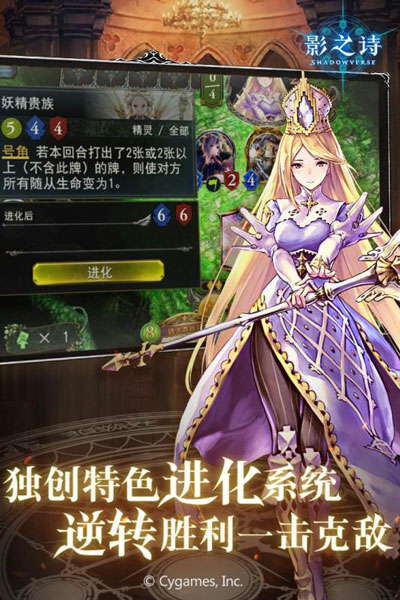 《影之诗》是一款由Cygames开发的卡牌对战游戏。本作采用传统玩家们所熟悉,双方各自使用自己的牌组对战,直到一方HP归零为止的对战玩法;而在收录卡牌方面,则将会收录一部分曾经参与《Rage of Bahamut》卡牌绘制的日本知名插画家担任本作卡牌插图绘制;每种卡片都有其各自不同的特殊能力,玩家们必须好好运用这三种类型卡牌的特色来编组牌组,才能打造出自己最强的卡牌与战略来打倒对手。