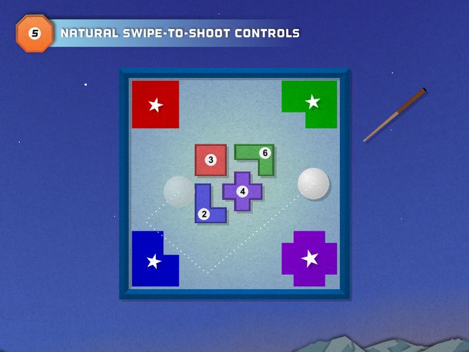 《纸上桌球(Super Paper Pool)》是一款休闲游戏,在游戏中,玩家需要挥杆击球,将小球撞向类似七巧板的方块上,方块入洞即得分。游戏核心还是桌球游戏的玩法,不过,这样改良还是非常独特。同时,游戏还加入了不少机关陷阱来增加游戏的难度,同时还有各种加分道具的出现,大大丰富了游戏的娱乐性。