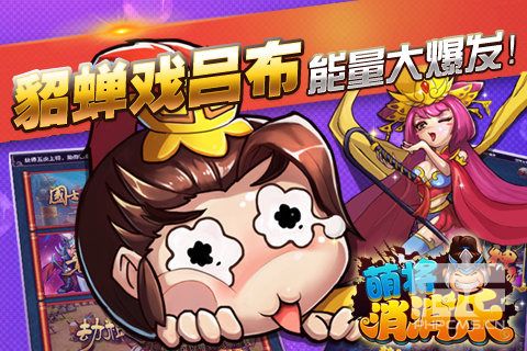 萌将消消乐是一款以经典三国演义故事为背景的策略消除RPG手游,玩家在游戏中将体验一把爽快兵种消除、武将收集与养成、攻打历史战役、群起诸侯攻乱世乐趣的极速战略消除手游。驰骋峥嵘三国岁月,书写霸王群雄传奇,只带你领略烽火三国、铁血战场,一统江山、傲视天下!