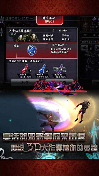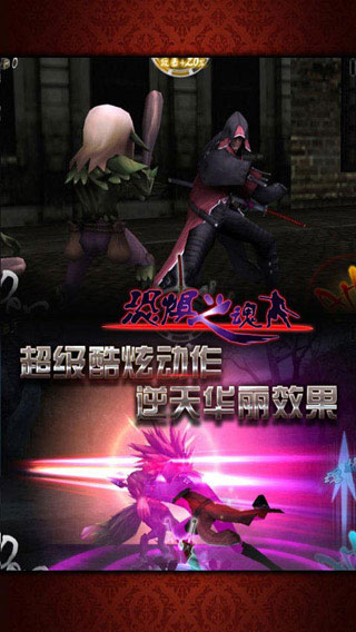 《恐惧之魂 SCARESOUL》是一款黑暗画风的3D动作游戏。玩家要扮演主角Scaresoul在深夜出没,猎杀怪物并吸取灵魂。简洁的UI和明快的画质是其特点之一,高速切换武器使得战斗更加爽快。同时武器合成强化和技能配备使可玩性也是大大增强。丰富的武器模式,爽快度很高的连击系统,让这款游戏在同类型的游戏中出类拔萃,道具买卖,合成装备的要素,为游戏锦上添花,特别值得称赞的是游戏的动作系统并不单调,至少在小编的眼中恐惧之魂中各种武器的使用是有一定深度的,只是无脑砍的话不一定能过关哦。 【注意】 游戏教程结束后需要联网和登录GREE账号才能继续游戏,否则会卡在START界面。