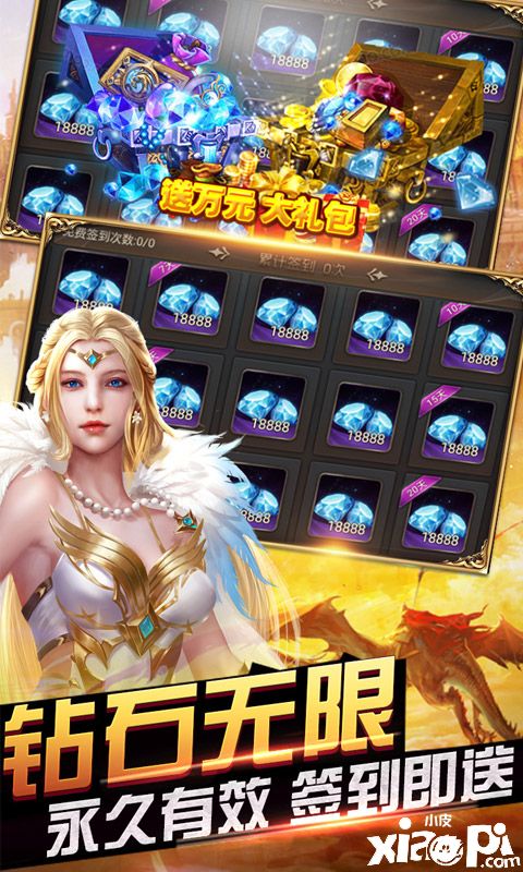 1、钻石无限福利:每日签到即送18888钻石,永久有效,帮你实现钻石自由!