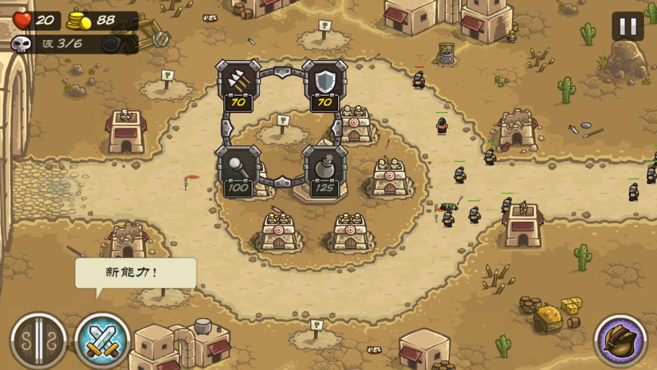 更有四种基本的建筑,包括箭塔、法师塔、兵营和火炮塔,每种防御塔都能够进行升级,更会有独特的技能。