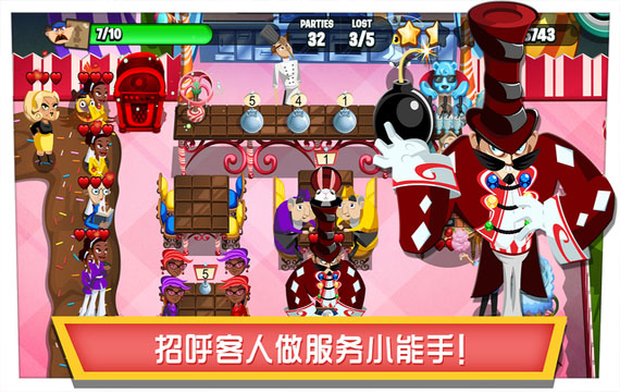 安排座位,热情服务,让饥肠辘辘的客人满意而归,赚取小费和惊喜大奖!注意迎合每位客人的特殊口味和需求,迎接全新添加的VIP客人和各种捣蛋鬼带来的挑战!