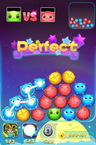 《逗逗猫》是一款休闲dots类游戏,滑动相邻的同色猫咪进行消除,防止猫球溢出的同时干扰对手的网络对战游戏。