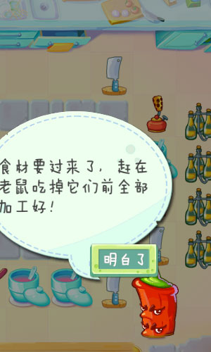 该游戏的背景就是让玩家成为一名优秀的厨师,在美食大赛的挑战之路上,会遇到各种艰难险阻,那就是那些变异食材以及非常可恶的老鼠,炮塔超级模式是游戏中的一个特色模式,能量豆让就可以让你扭转战局,而且食材还会反击。