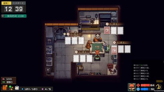 本试玩版中玩家可以随心所欲地行动,享受《动物迷城》作为策略 CPRG 的游戏魅力。例如在游戏最开始,玩家可以按部就班的尝试在监狱中打工赚钱,也会因此需要先行去医务室开具健康证明。而在医务室开具证明的时候,玩家则有机会偷窥值班医师的电脑,为后续的人际交往或脱狱计划埋下伏笔。