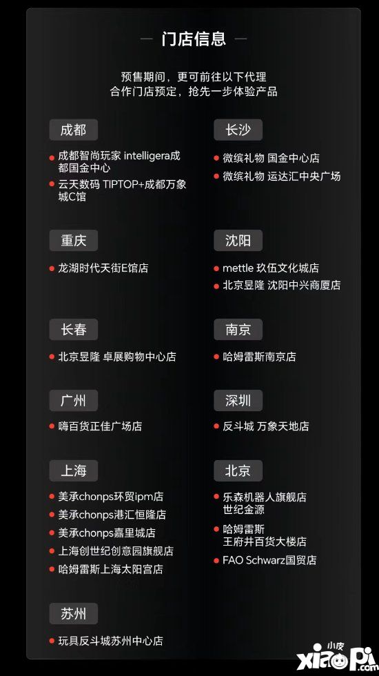 消费者现在即可在乐森机器人天猫和京东旗舰店预购乐森钢锁G1旗舰系列机器人收藏版,预购早鸟价为人民币8499元,预计出货时间为2023年第四季度。同时,消费者也可以在以下城市的乐森机器人线下自营及代理合作门店抢先一步现场体验产品并预购。