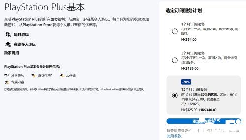 PS+优惠具体细节如图下:一档会员享受八折优惠 原价425港币 现价340港币(约316元)