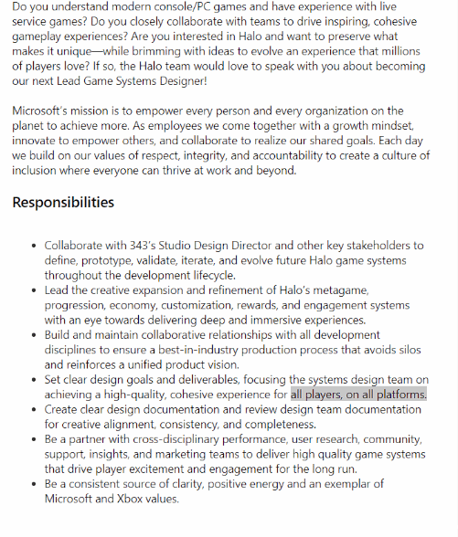 据343 Industries近日放出的首席游戏系统设计师职位的招聘信息显示,《光环》系列的下一部作品很有可能将登陆全平台。