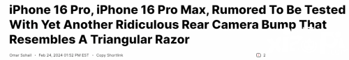 曝苹果iPhone16 Pro系列测试三角形镜头:神似剃须刀