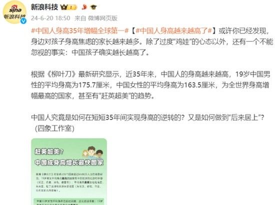 中国人身高35年增幅全球第一 19岁男性平均175.7厘米