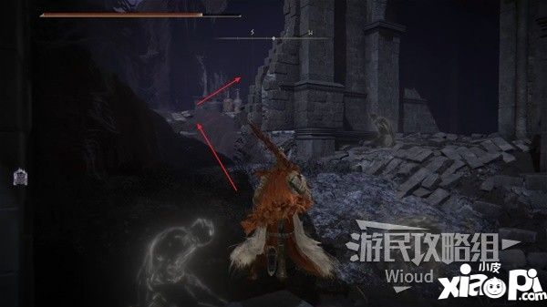 来到火吻遗迹的入口沿着土坡进入左前方的入口,上楼梯之前打碎楼梯右侧的罐子,可以拾取到一个卢恩。