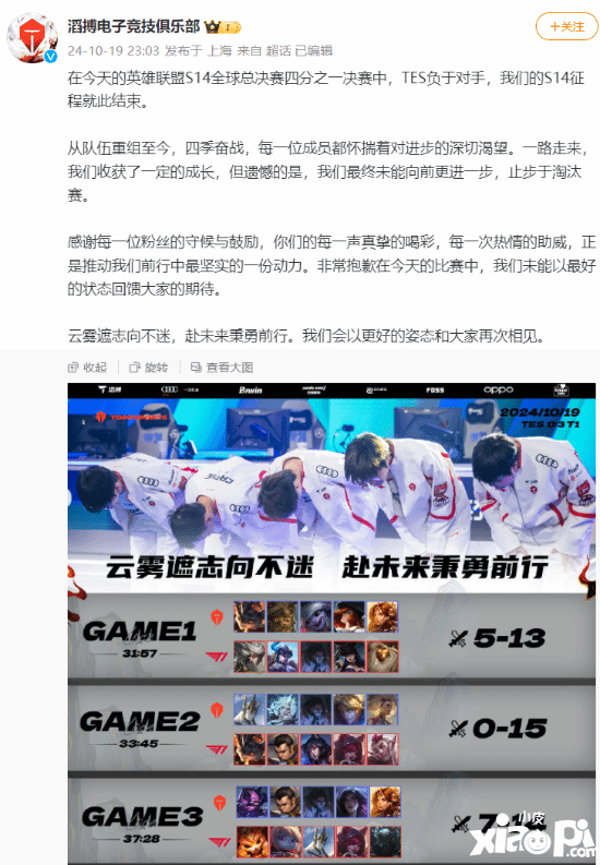 "TES赛后发文致歉"B站热搜第一:真得好好反思了