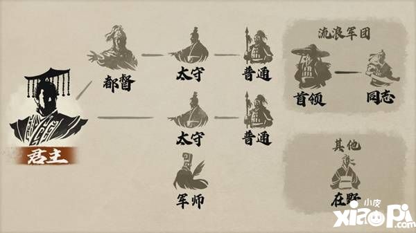 | 君主 | 统领势力的身份。 可执行外交同盟等战略,决定势力整体走向。 可根据自身判断执行大部分指令。 |