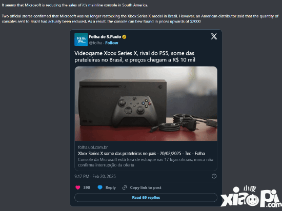 曝XSX主机正在巴西逐步减少销售:未来或主攻数字方向