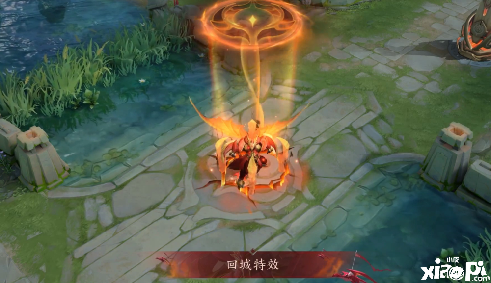 大招则变成了牢笼的效果,开启大招之后地面上会出现四个巨大的龙牙,每一个龙牙都用火焰进行连接,其中的墨子更是张开了他的翅膀,看起来就像是魔龙降世一般,回城特效则对应了出场动画,墨子再次张开翅膀,向着天空中的传送阵飞去。