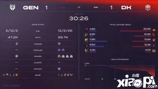第一局双方鏖战52分钟,BDD和辅皇压制住对面中野,双方经过漫长的资源互换,GenG一度落后,但最后Ghost被抓住机会,Flawless堵上职业生涯的闪现操作拿下比赛。除了GenG顽强的绝地翻盘,Showmaker和Canyon的状态也是肉眼可见的低迷。