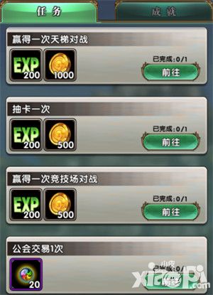 在游戏主页界面可进入到任务界面,任务分为日常任务和成就任务。