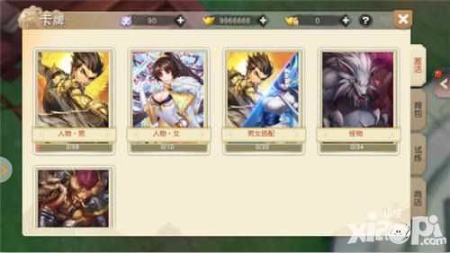 卡牌激活分为五种组合的方式,分别是:男、女、男女、怪物、人兽五种组织。