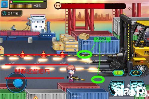 总结:看到炮弹走大圈躲避、看到机枪放下来就躲到boss脚下两侧位置,平时注意保持跟boss的距离,看到地上红箭头立刻向屏幕左边跑。这样一来,boss的各种技能都可以迎刃而解了。