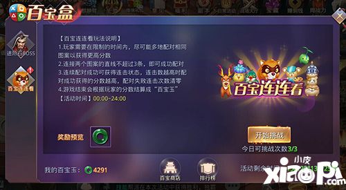 从孩提时代起,游戏就与我们的生活密不可分,一些操作简单却又充满乐趣的游戏从小玩到大也依然热度不减,《昆仑墟》此次推出的“百宝连连看”玩法,便堪称经典。玩家需要在限制的时间内,尽可能多地配对各种可爱的动漫人物、消除相同的图案来获得更高分数,游戏时间结束后会奖励玩家大量的百宝玉哦~可在“百宝商店”中兑换众多珍稀物品!