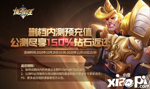 天下没有免费的午餐,但在我们的《拔剑称王》中就有。为了感谢领主长期以来不离不弃的支持,游戏首次封测期间,隆重开启“充值返利”活动,期间领主们充值任意金额,都将在公测时按照150%的比例返还钻石,四舍五入等于白嫖,横竖都是不亏!届时公测开服之际,领主们就可以凭借这些返利快速发育,先人一步拔得头筹,轻松称霸卡美洛战场!