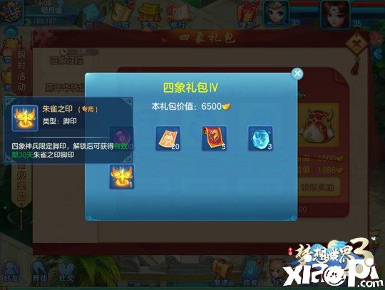 四象礼包:11月4日维护后—12月1日24:00,可在奖励界面免费领取四象礼包Ⅰ获得奖励,也可继续付费解锁其他礼包,获得更丰富的奖励,其中四象礼包Ⅳ更有全新的主题足迹——朱雀之印!