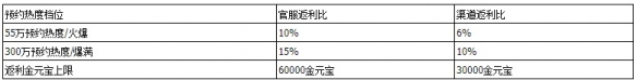 返利比例取决于预约热度,当预约热度达到爆满时,返利比例将达到15%,最高返利额度60000金元宝!