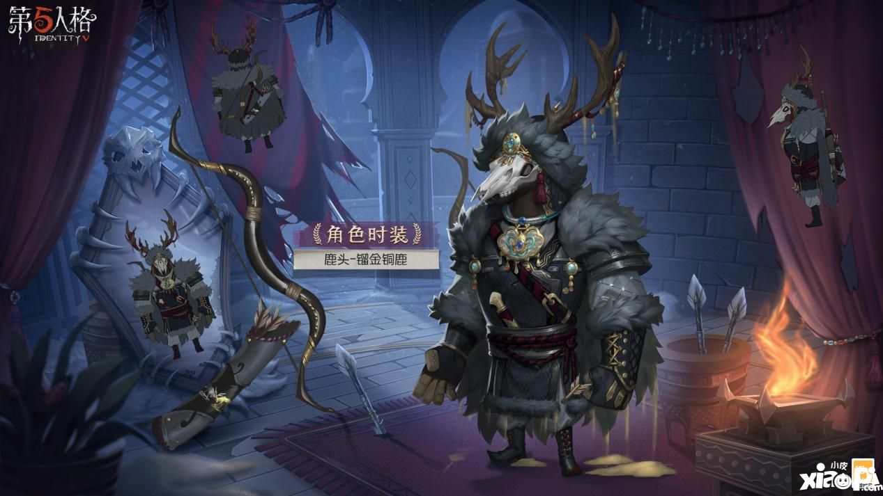 【奇珍时装】鹿头-镏金铜鹿枯藤般的鹿角上缠绕着布条,零星的铜饰于布条上垂下,身着毛皮和盔甲,以鹿骨面具遮挡面容,颈圈上挂着锁却雕刻鱼鳞纹样。