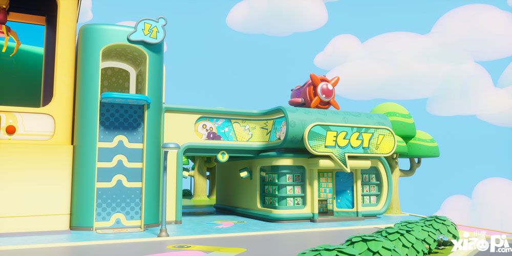 优雅梦幻的配色,圆润简约的线条,再搭配斑点图案,酷炫的装修潮流感十足。商店顶部巨大的电子屏幕正播送着蛋仔岛的最新时尚,而店内琳琅满目的盲盒墙更是极具视觉冲击,堪称弄潮蛋的快乐天堂!