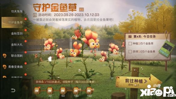 寒来暑往,秋收冬藏,金风送爽,收获满仓。幸存者们辛勤耕耘,在废土世界建立起温馨家园。为了激发大家的劳动热情,联盟发起了守护金鱼草活动。9月28日-10月12日凌晨3点期间,幸存者可通过完成当日执勤点任务等途径获得金鱼草种子,一起来种金鱼草、摘金鱼果吧!