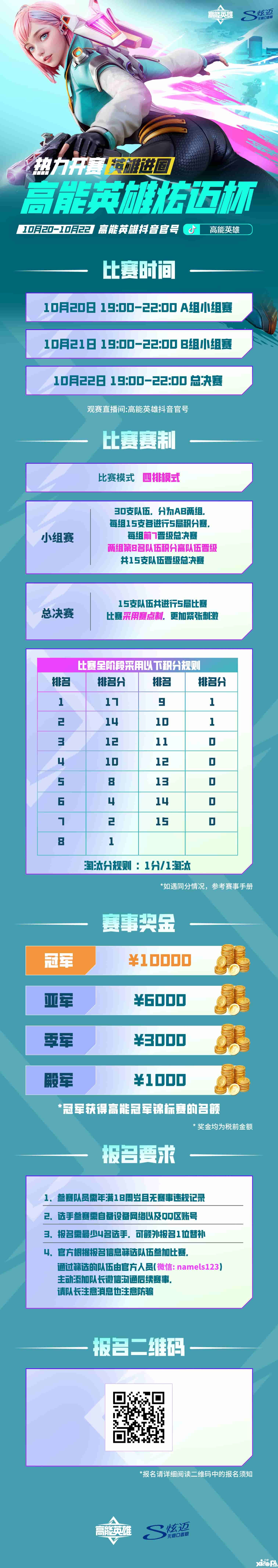 比赛将于10月20日打响,届时让我们一同欣赏精彩的战术竞技射击对决,见证高能炫迈杯冠军的诞生!最后提醒一下大家,也别忘了关注@高能英雄,关注更多福利与精彩赛事内容 以上为本篇文章的全部内容,点击进入“小皮游戏网”,时刻了解最新游戏资讯。