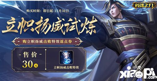 11月3日-11月30日,花费30元可立刻获得全新立帜扬威击败特效,完成指定试炼任务将返还300点券,相当于无需花费任何点券,我们直接送全新击败特效!