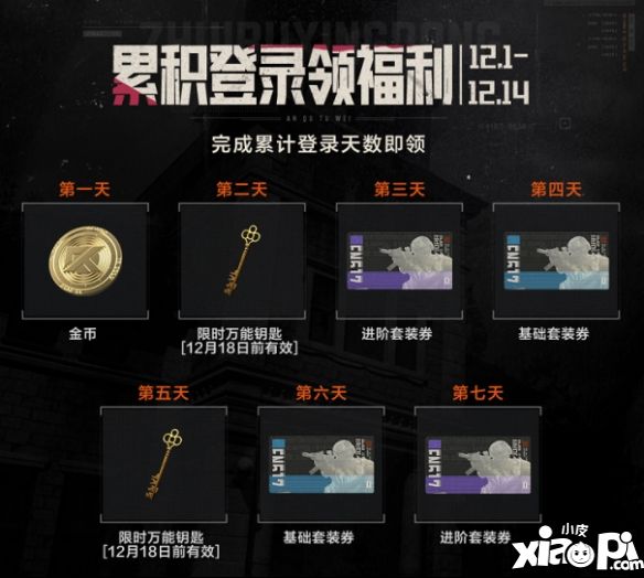 版本更新福利大剧透,海量福利签到就送!万能钥匙、进阶套装券动动手指即可领取!活动期间,先锋累计登录1天即可获取60金币,累登2天/5天则可分别获取万能钥匙1把;累登3天/7天可以领取进阶套装券一张;累登4天/6天可获取基础套装券1张。