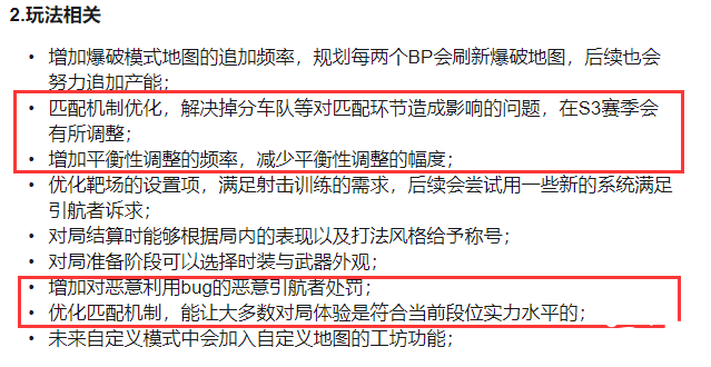 针对平衡性与匹配机制的调整也被官方视为了重中之重。有别于以往可能“用力过猛”的平衡方式,官方表示将在第三赛季启用全新的平衡模组,即在后续的更新中采用高频多次但力度较小的调整方式,以便更好满足玩家对平衡性的要求。同时官方还会持续优化匹配机制,从源头解决掉分车队等不正当游戏行为,并在对局匹配时增加选项是否需要AI,增强所有玩家的匹配体验。