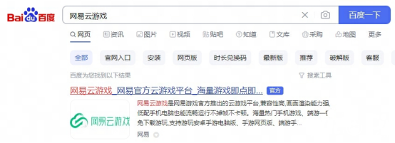 1.打开网页(MAC请使用Safari)搜索“网易云游戏”,找准网易云游戏官网进入;