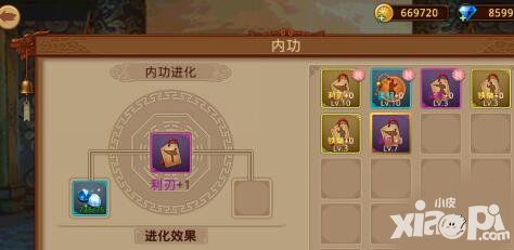 每个内功都可以通过吞噬其他内功而升级,从而得到加强升级到2阶以上的内功,可以通过内功进化丹获得更高一个层次的强化,对于不想再修炼的内功,可以通过重生的而方式将其还原为原始的内功,而返还的材料可以用于进化其他内功。