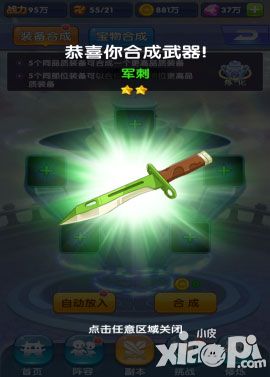 2、5个相同部位的装备可以合成出1个同样部位的装备且品质更高。游戏里装备的品质也用颜色来区分,最低从绿色开始,蓝色,紫色,橙色,红色,最高是金色。合成功能最贴心的地方就是让每个看似过时的装备都变得有用了,给每一位玩家希望。