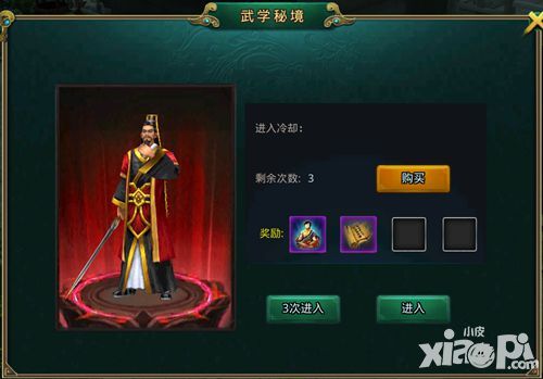 武学秘境一天可进入3次,可以通过使用绑定元宝增加进入副本的次数